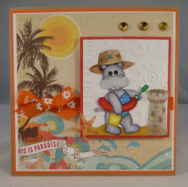 Yes, summer is slowly coming to an end, but I just couldn't resist one last beach card! Who could resist this adorable Beach Hippo digi from PCW!